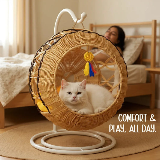 Wovyn Cat Hammock | Cozy Cat Swing | Breathable Design | Cushion & Toy Included