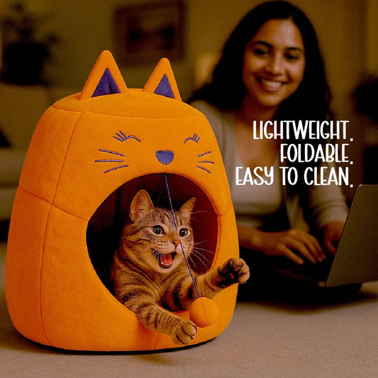 Meow Cave – Covered Cat Lounge with Built-in Scratch Board | Safe, Cozy & Enclosed