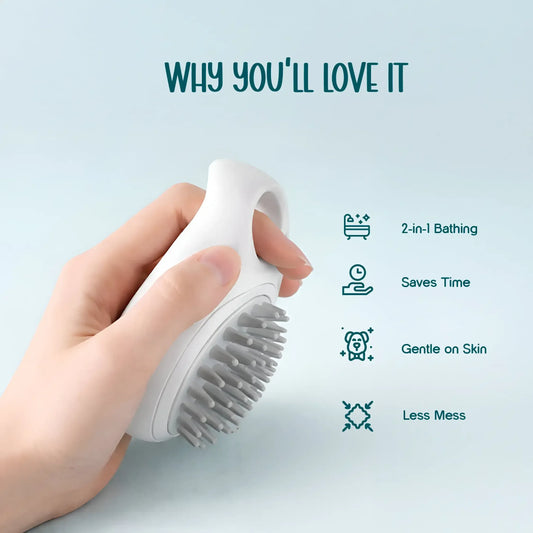 FoamFlow Bath Brush - 2 in 1 Pet Massage Brush with Shampoo Dispenser