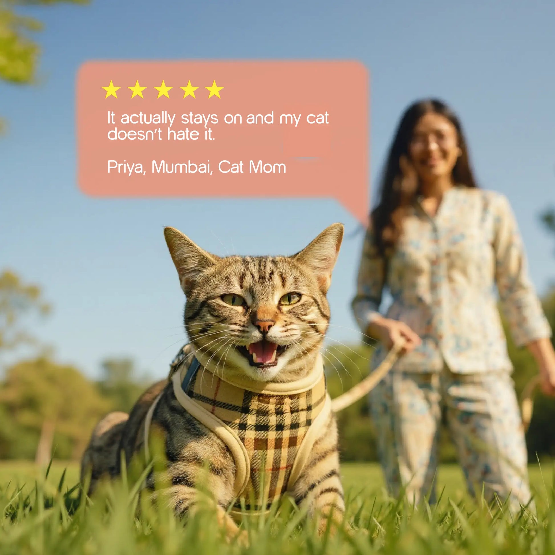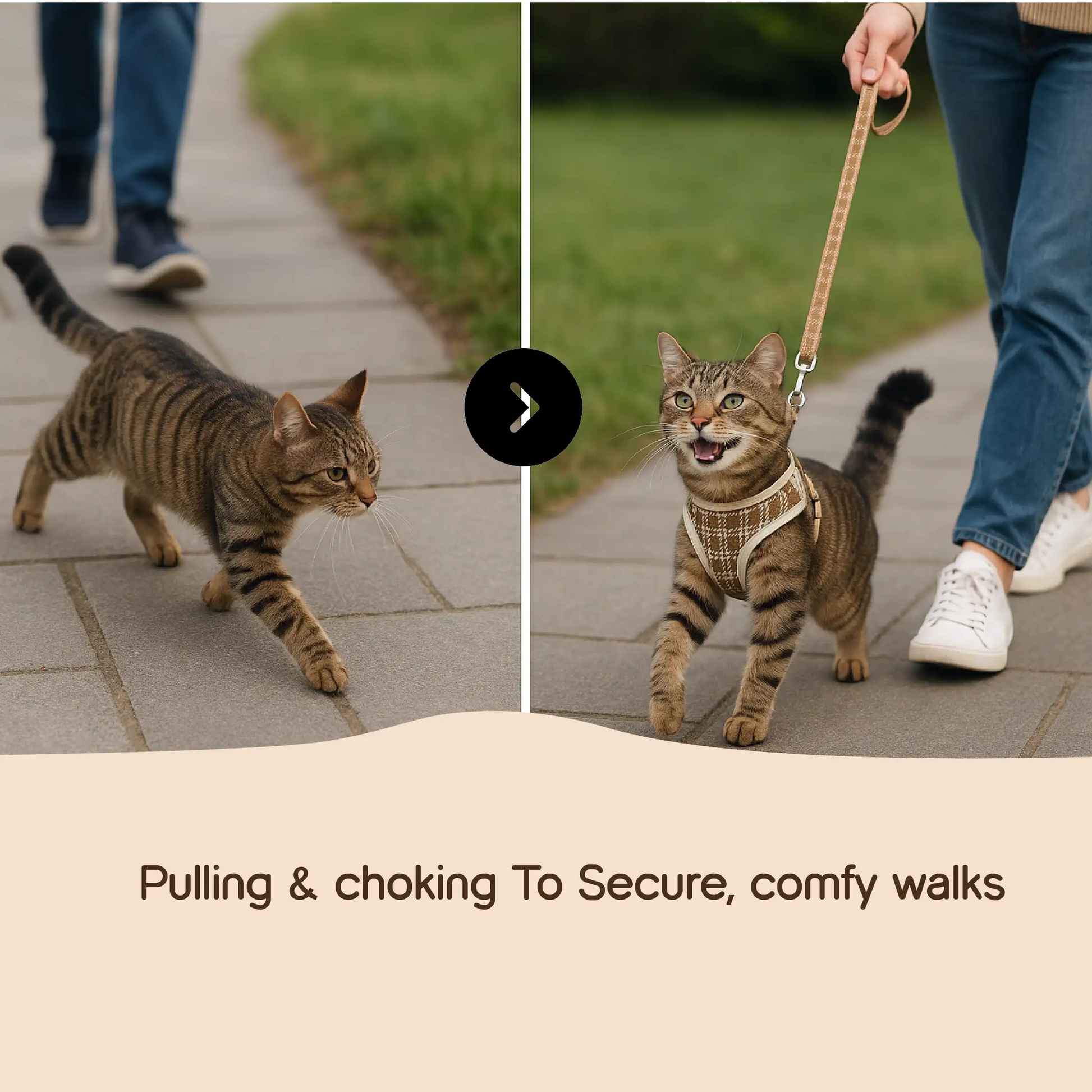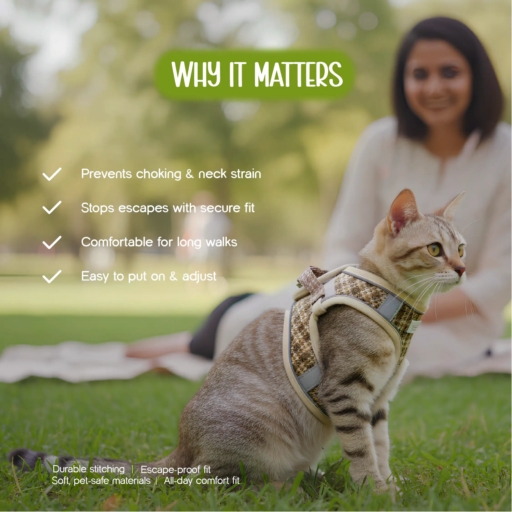 Escape-proof harness with no-pull comfort, breathable mesh, and reflective safety. Adjustable, secure fit for cats, small pets, and training pups.