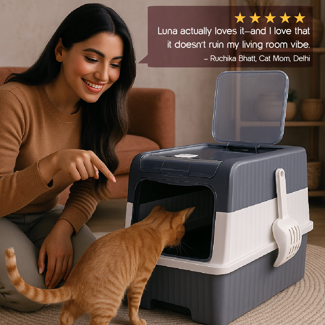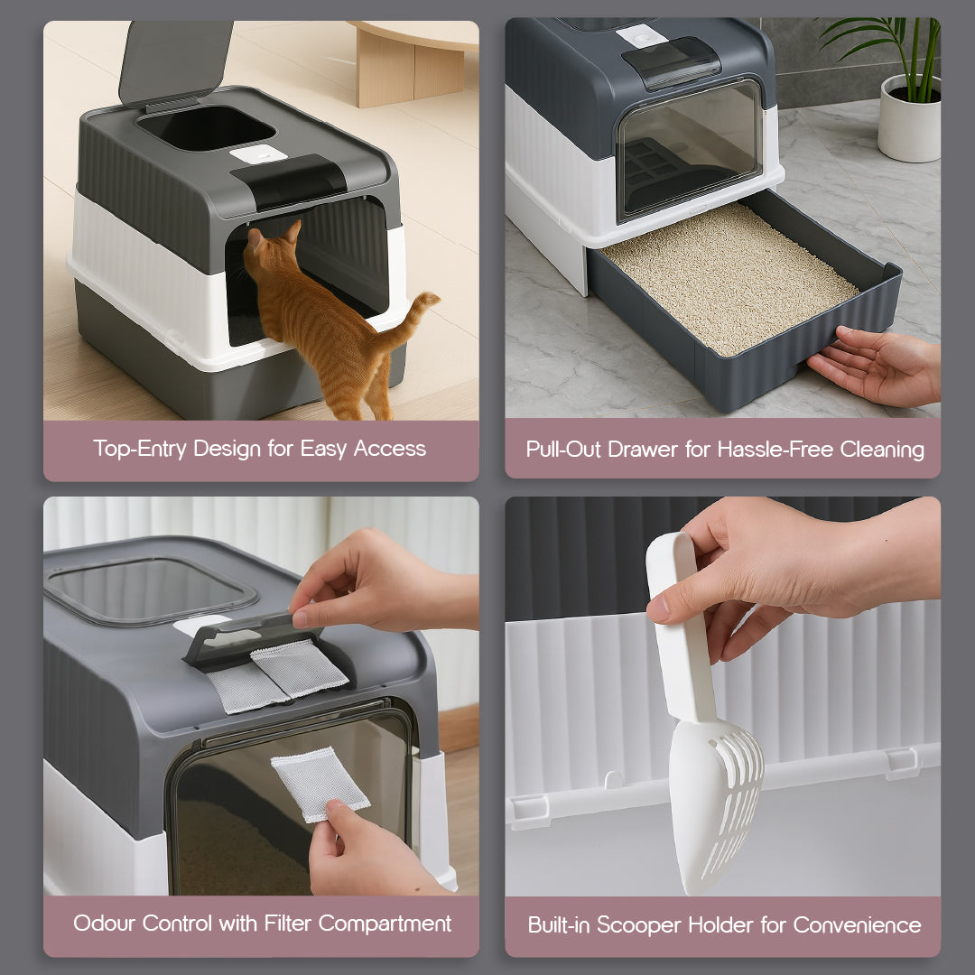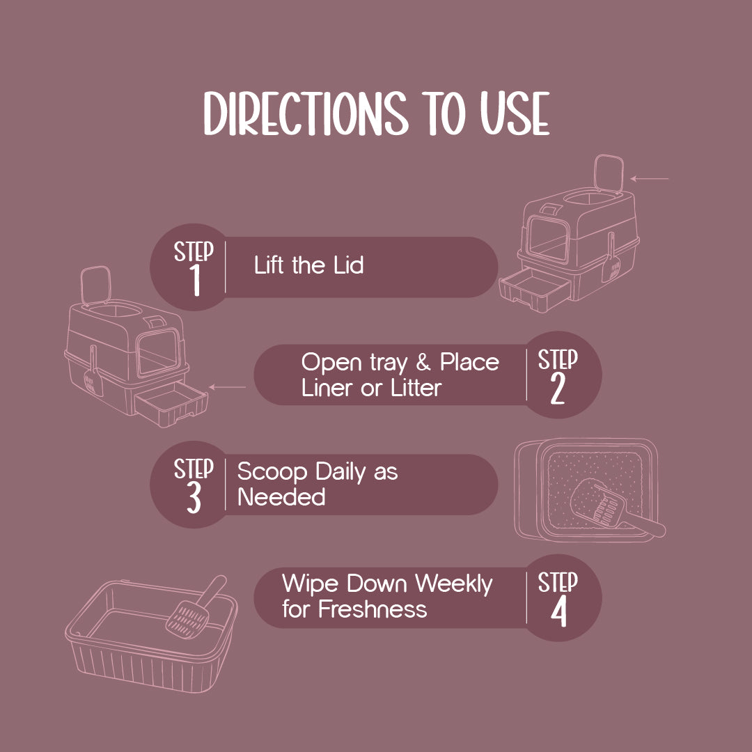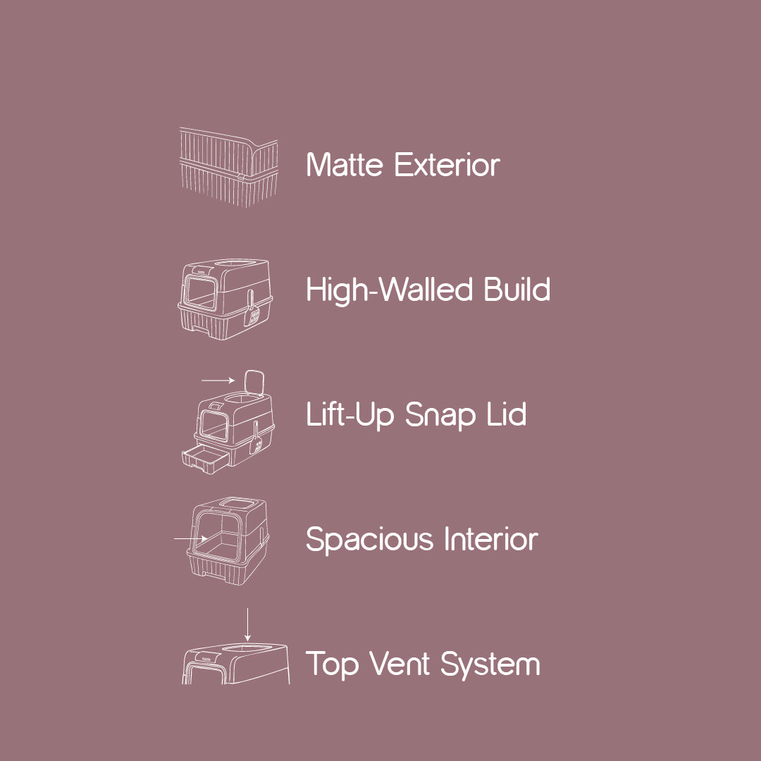 • Top-Entry Lid: Prevents litter spills and gives your cat privacy.