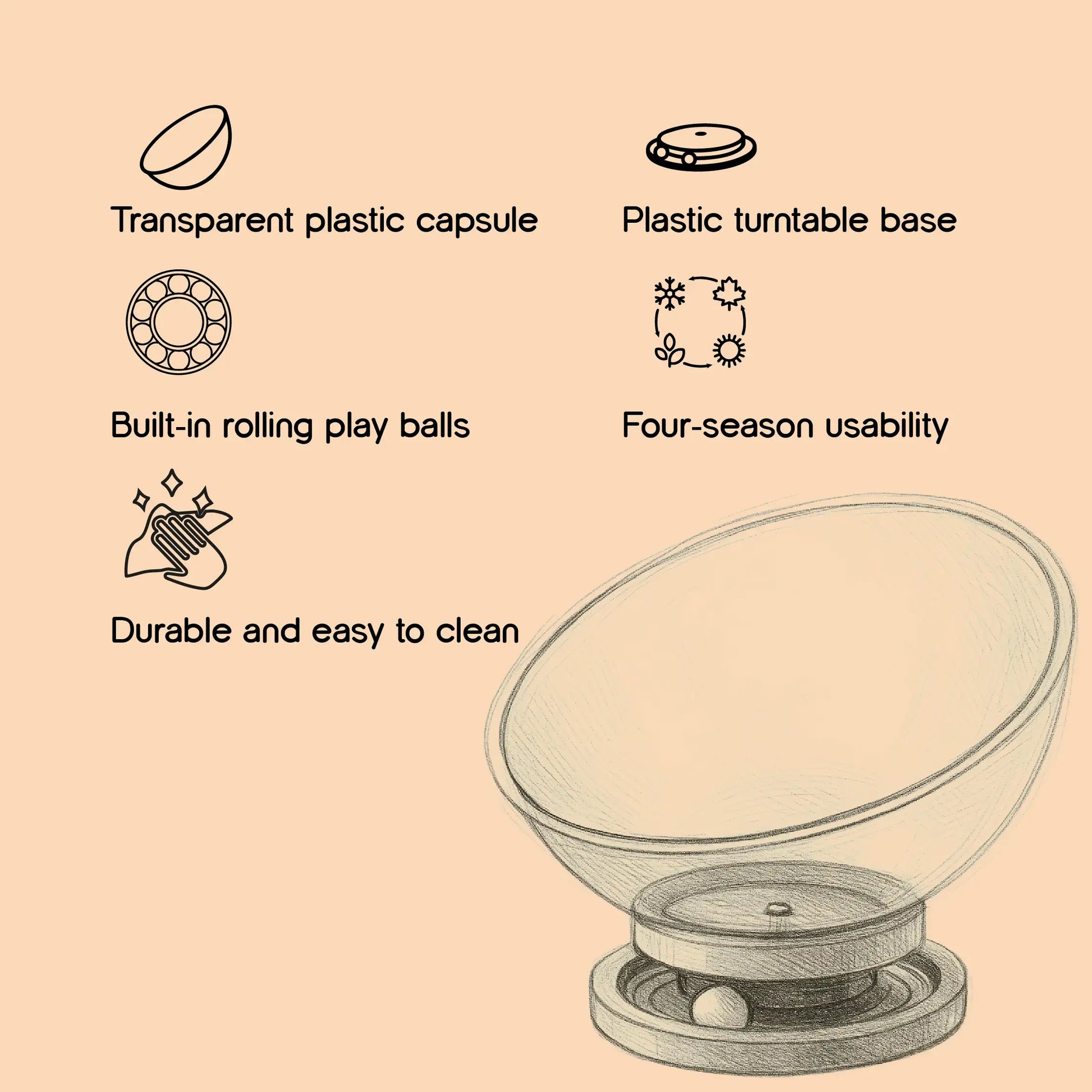 The Moonbeam Nap Pod gives your cat a cozy, space-inspired retreat. Its transparent capsule design keeps them secure yet curious, while built-in rolling balls spark playful moments. With a smooth turntable base and easy-to-clean build, it’s perfect for year-round lounging, relaxation, and endless feline fun.