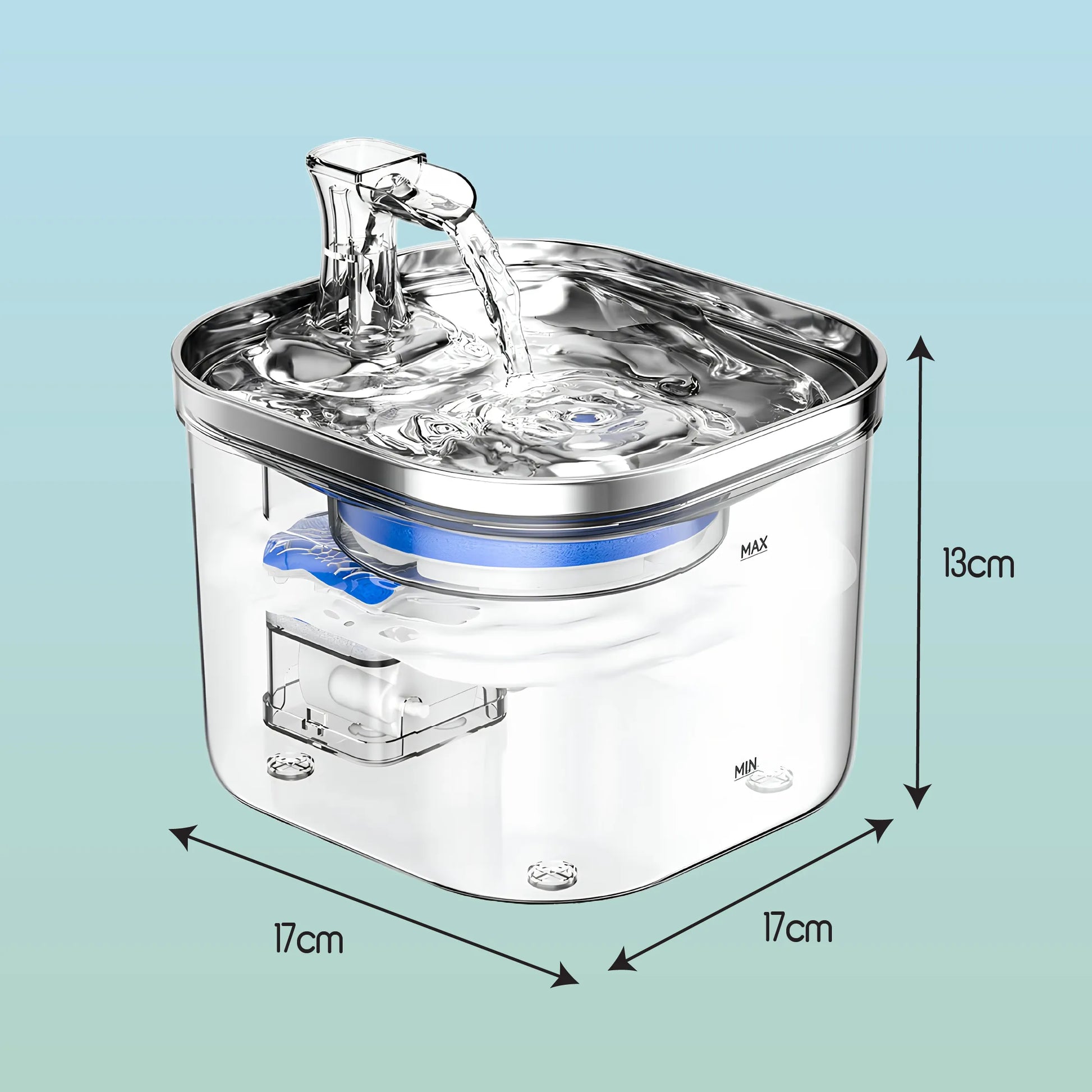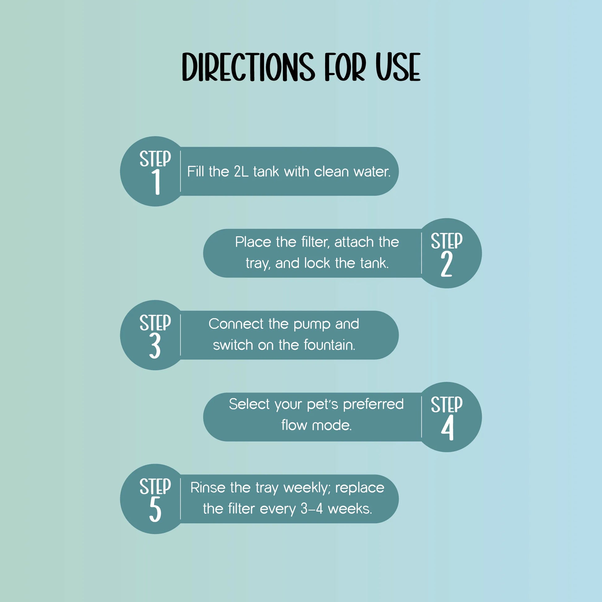 OxyFlow Fountain provides fresh, flowing water that mirrors natural drinking instincts. Its stainless-steel tray, 10-stage filtration, and ultra-quiet modes keep every sip clean, oxygenated, and odour-free. With a 2L transparent tank and steady flow, it encourages healthier hydration for cats and dogs, every day.