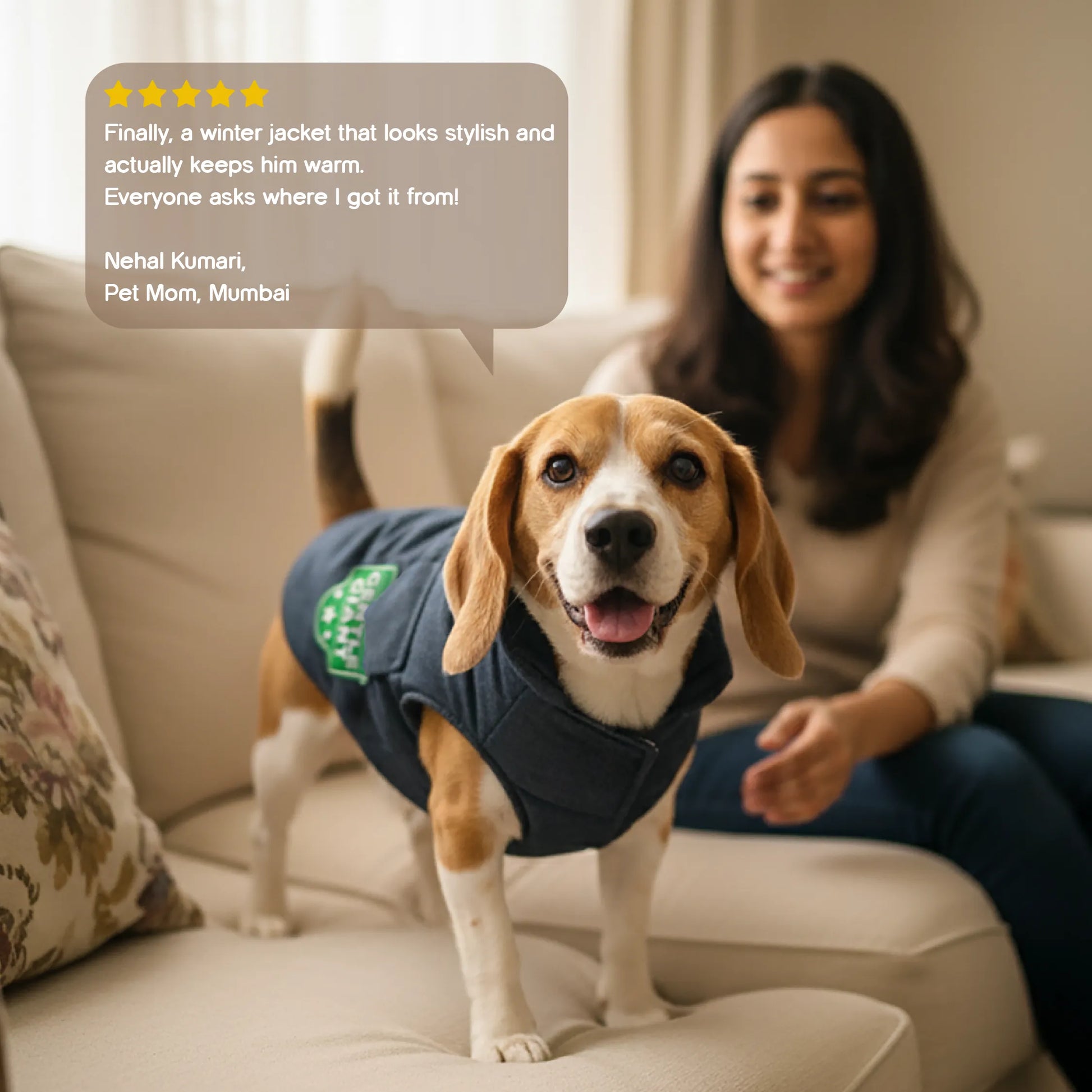 The Persona Jacket lets you choose a patch that matches your pet’s personality, while keeping them warm, stylish, and ready for every chilly walk. With its denim-look outer, soft puffer lining, and secure Velcro fit, it’s cozy, durable, and effortlessly cool — perfect for winter comfort, daily wear, and picture-perfect outings.