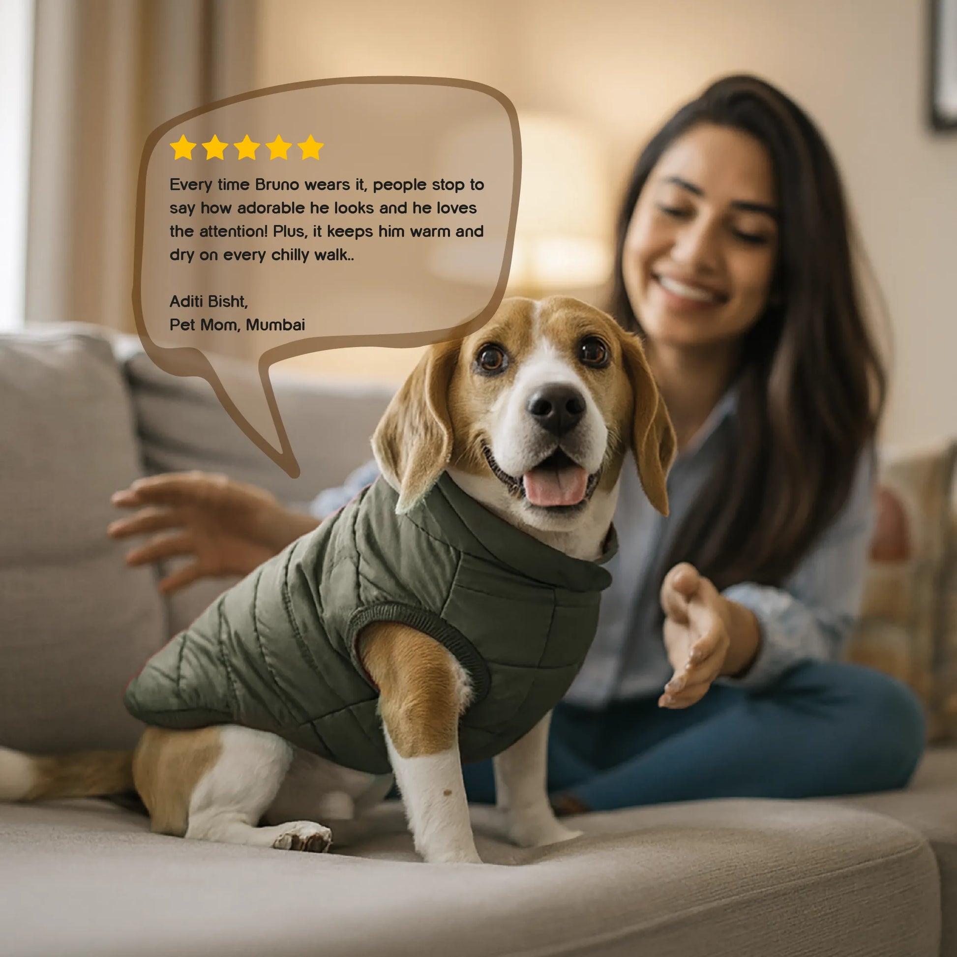 The CalmFrost Puffer Jacket keeps your pet warm, dry, and stylish all winter. With a waterproof shell, triple Velcro straps, and soft inner padding, it offers comfort, easy wear, and full protection from wind and rain—perfect for chilly walks and cozy adventures.