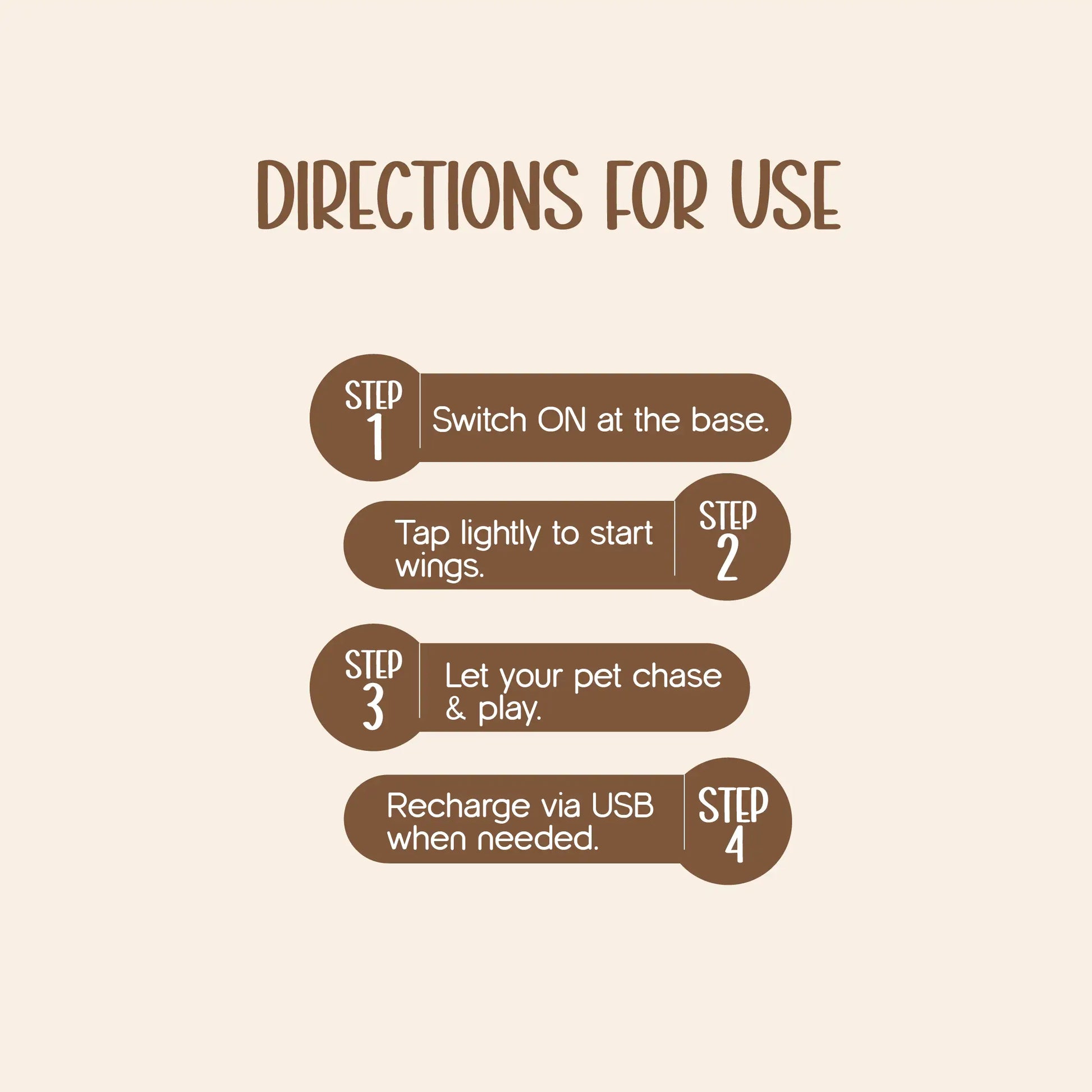 A smart flapping bird toy with real sounds to excite cats & small dogs. Rechargeable, safe & eco-friendly fun that keeps pets active and happy indoors.