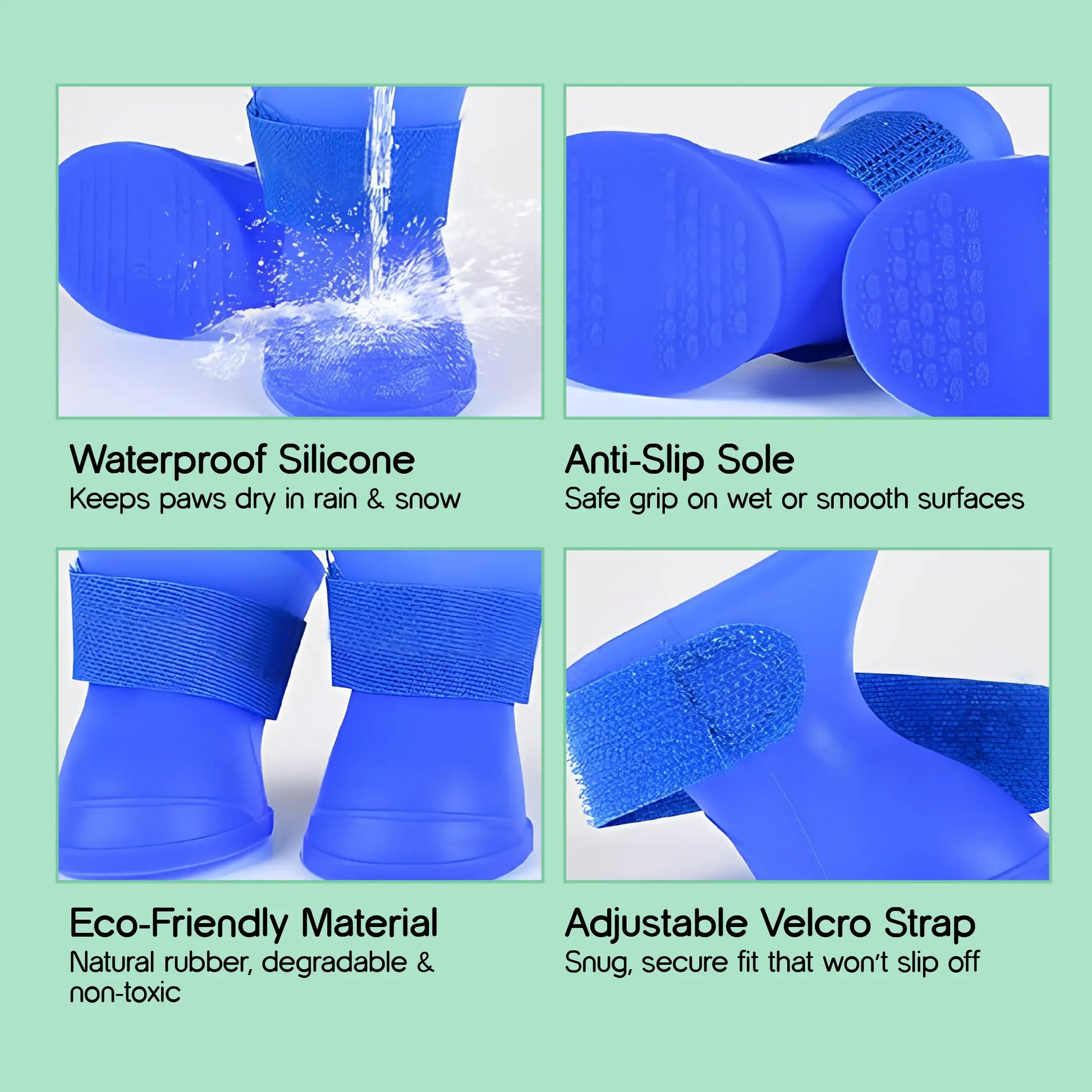 Silora Boots protect your dog’s paws from rain, snow, and rough surfaces. Made with waterproof silicone, anti-slip soles, and soft, durable materials, they offer a secure, comfortable fit with adjustable velcro straps. Perfect for keeping paws dry, safe, and your home clean in every season.