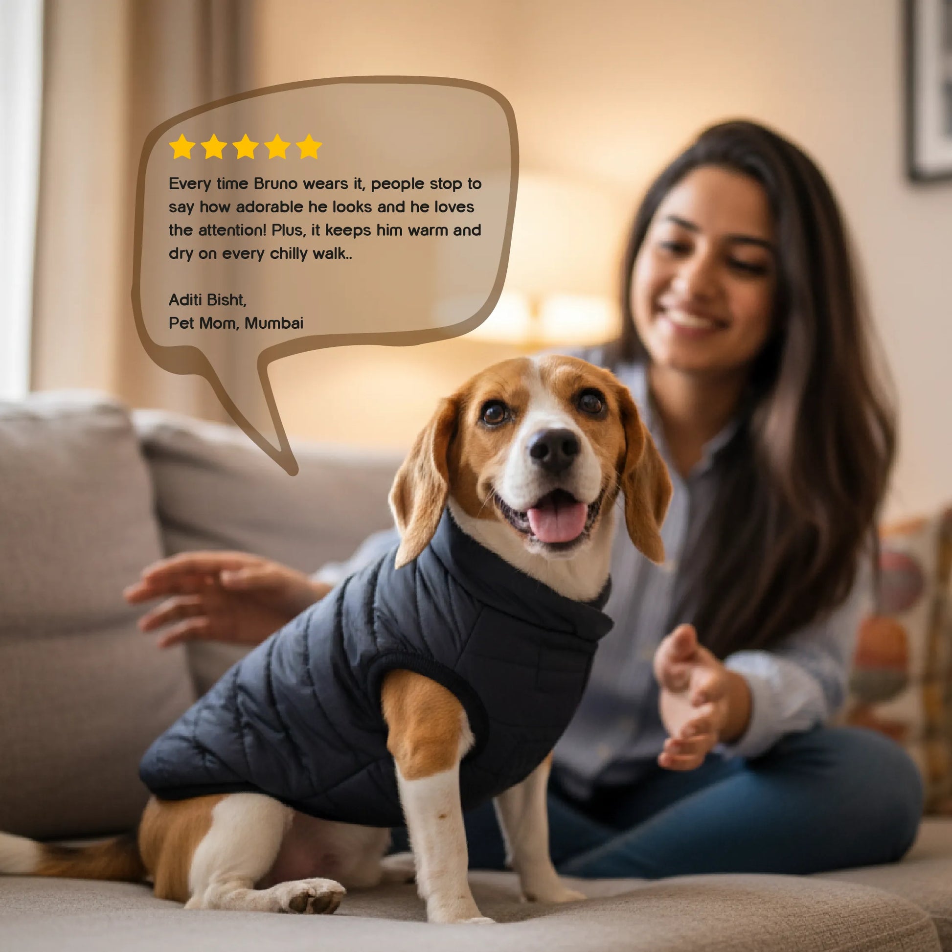 The ThermaWrap Puffer Jacket keeps your pet warm, dry, and stylish all winter. With a waterproof shell, triple Velcro straps, and soft inner padding, it offers comfort, easy wear, and full protection from wind and rain—perfect for chilly walks and cozy adventures.