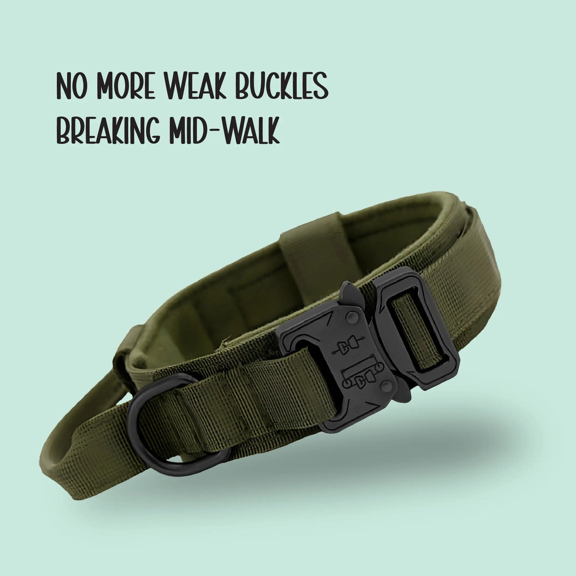 TitanK9 Tactical Collar combines strength, comfort, and control for everyday walks and outdoor adventures. Featuring a soft padded lining, durable metal D-ring, quick-release buckle, and built-in handle, it ensures a secure fit and reliable performance, even for the most powerful dogs.
